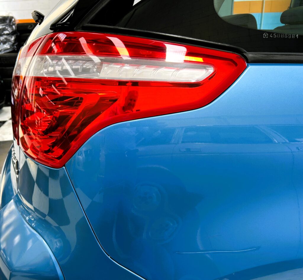 L’auto si presenta in colorazione Bleu Tivoli metallizzato ancora lucida e brillante .