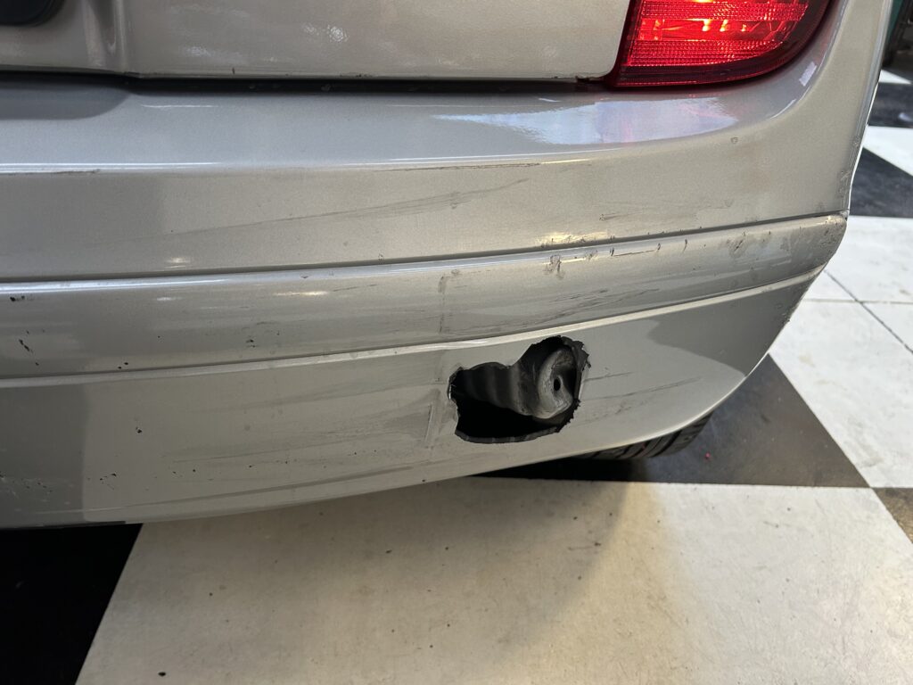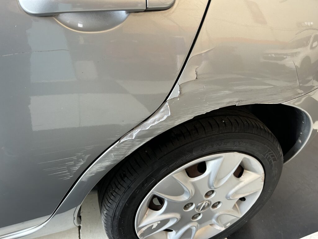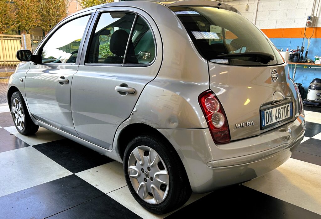 La carrozzeria presenta vari segni e graffietti ed il paraurti posteriore ha un buco .